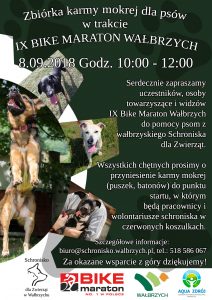 Podczas Bike Maratonu w Wałbrzychu pomagamy! Zbiórka pokarmu dla zwierząt z wałbrzyskiego schroniska.