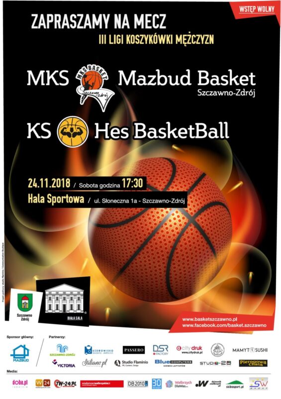 MKS Mazbud Basket Szczawno-Zdrój zaprasza serdecznie wszystkich kibiców, na kolejne spotkanie rozgrywkach 3 ligowych. Tym razem podopieczni trenera Bartłomieja Józefowicza podejmą 24 listopada zespół z Wrocławia KS Hes Basketball.