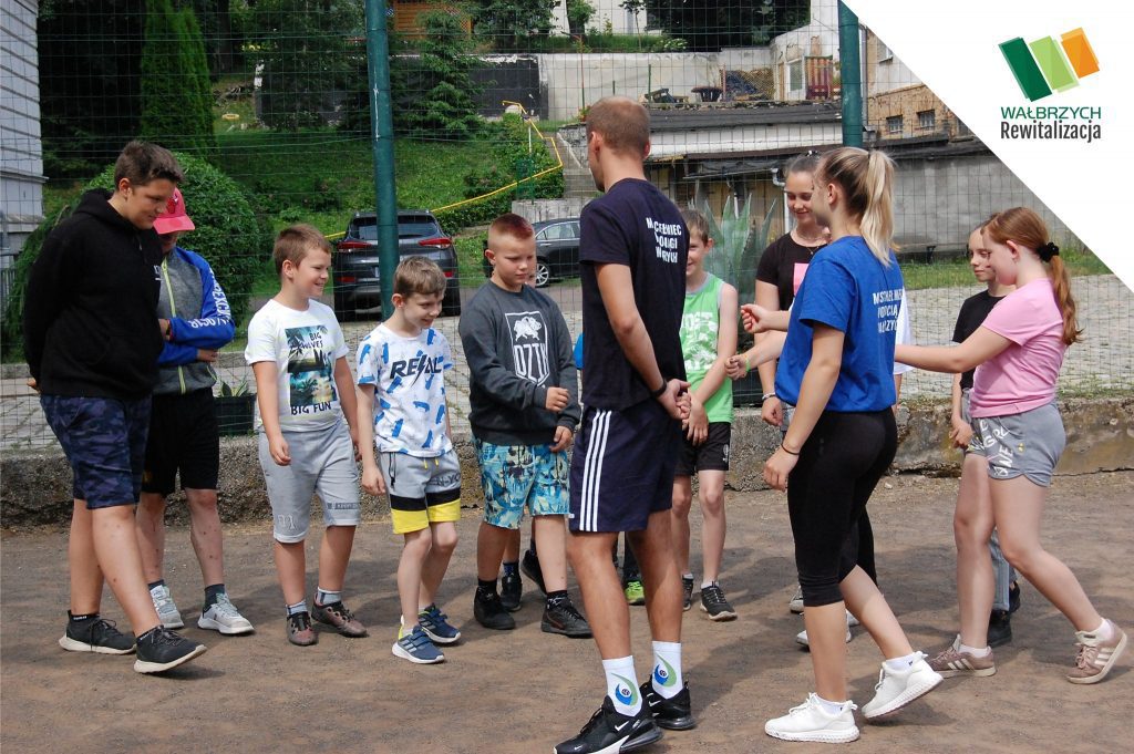 Dzieci z dzielnicy Sobięcin brały udział w treningach siatkarskich, które odbywały się na terenie świetlicy środowiskowej „Kuźnia Talentów”