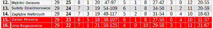 - Czarni Wałbrzych – Zagłębie Wałbrzych (14 miejsce)