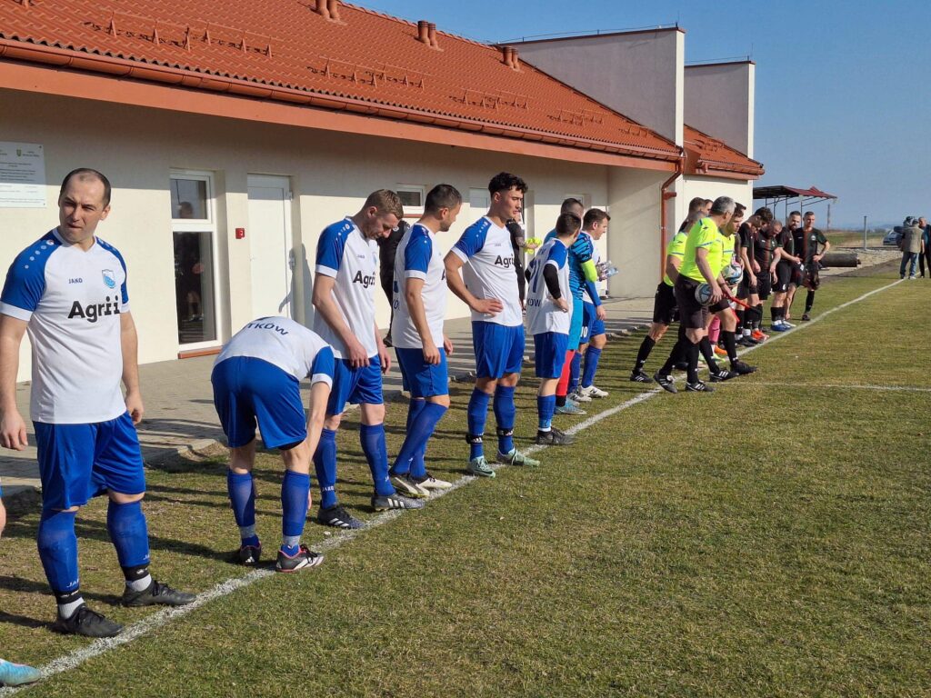 Pierwsza połowa była wyrównana. Zobaczyliśmy dużo walki w środku boiska i kilka sytuacji podbramkowych, z których gospodarzom udało się wykorzystać jedną. Po pół godzinie gry na strzał z dystansu zdecydował się Jakub Smutek. Po jego uderzeniu gospodarze objęli prowadzenie. Drugiego gola już w drugiej połowie meczu zdobył Kuba Smutek. Wynik meczu ustalił Karol Paździora.