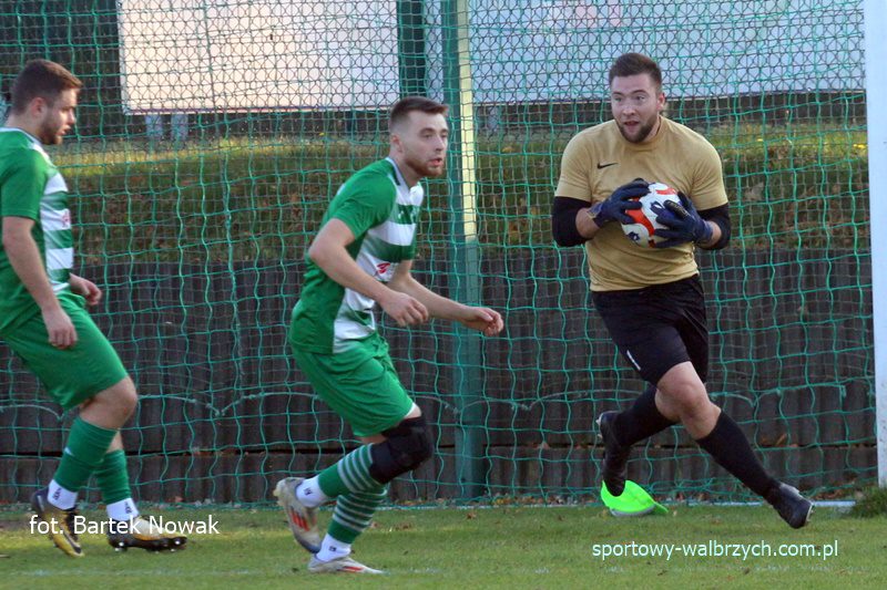Mecz znów o dwóch obliczach naszej ekipy, pierwsza połowa można powiedzieć że kopiuj wklej z drugiej części meczu z Walimiem. Dużo niedokładności, strat w środku pola, z jedną różnicą, dzisiaj od początku były chęci do gry i chłopaki dawali z siebie wszystko. Przeciwnik jedna ze swoich kilku dogodnych sytuacji wykorzystuje i do szatni schodzimy ze stanem 1 dla przyjezdnych. Po zmianie stron do zaangażowania dołączyła gra kombinacyjna, gra skrzydłami i walka w środkowej części. Efekt? Najpierw Błażej Gromniak po dośrodkowaniu z rzutu rożnego Tomka Czechury strzela gola głową. Kilka chwil później również po stałym fragmencie gry Mariusz Antas wrzuca do Wojtka Choinskiego i wychodzimy na prowadzenie. Emocje do samego końca były na wysokim poziomie, goście rzucili się do ataku, ale dzisiaj w bramce mieliśmy ministra obrony, Kamil Słomowicz dwukrotnie wyciągnął piłkę z samego okienka oraz popisał się jeszcze kilkoma innymi kluczowymi interwencjami, walnie przyczyniając się do wygranej – cieszą się gospodarze.