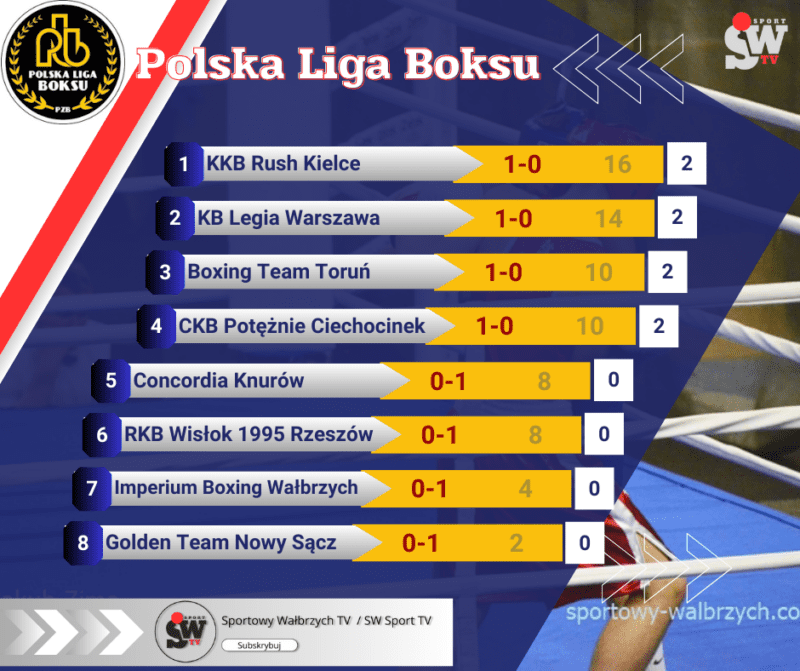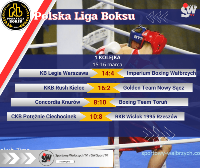 Za nami 1 kolejka Polskiej Ligi Boksu. W gronie ośmiu zespołów, które przystąpiły do rywalizacji w premierowym sezonie znalazł się Imperium Boxing Wałbrzych. Podopieczni trenera Krzysztofa Sadłonia na dzień dobry zmierzyli się z naszpikowaną reprezentantami kraju, Legią Warszawa.