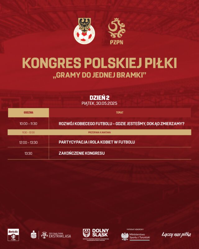 Po finale Ligi Konferencji Europy, który odbędzie się Wrocławiu 28 maja, przez dwa dni przedstawiciele Polskiego Związku Piłki Nożnej, wojewódzkich związków i środowiska sędziowskiego będą debatować o kierunkach rozwoju polskiej piłki. Kongres pod nazwą Gramy do jednej bramki zorganizuje Dolnośląski Związek Piłki Nożnej wraz z PZPN-em i spółkami zarządzającymi najważniejszymi rozgrywkami piłkarskimi w Polsce: Ekstraklasą i Pierwszą Ligą Piłkarską.