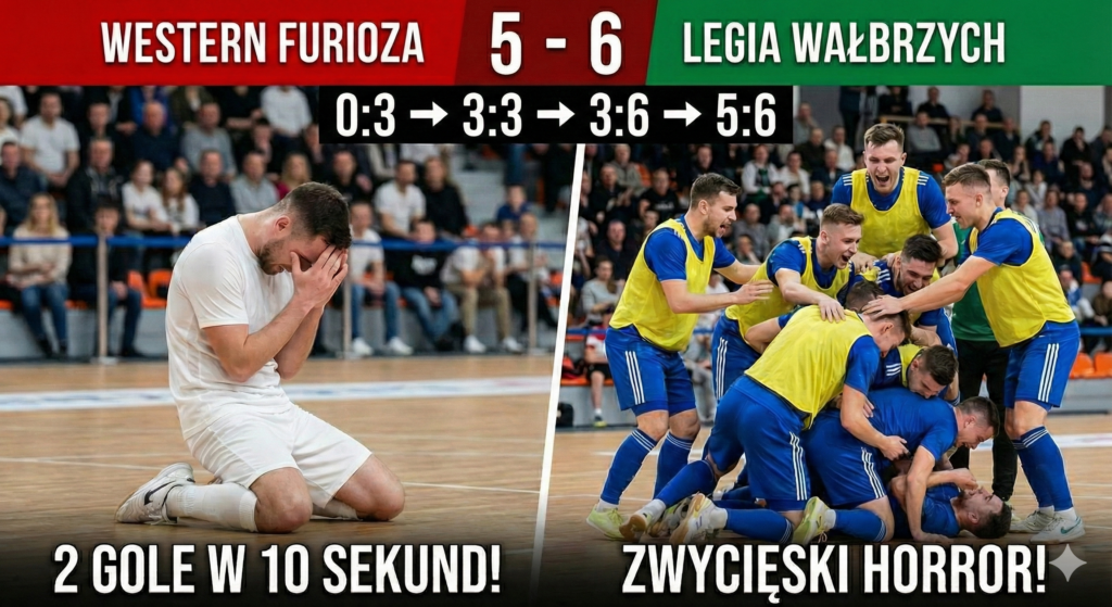 Legia rozpoczęła mecz z ogromnym impetem, szybko budując solidną zaliczkę 3:0 dzięki skuteczności m.in. Jakuba Maścianicy i Kacpra Steca. Wydawało się, że lider tabeli kontroluje mecz, jednak Western Furioza pokazała niezwykły charakter. Jeszcze przed przerwą rzucili się do odrabiania strat, sensacyjnie doprowadzając do remisu 3:3 po trafieniu Michała Rzońcy.